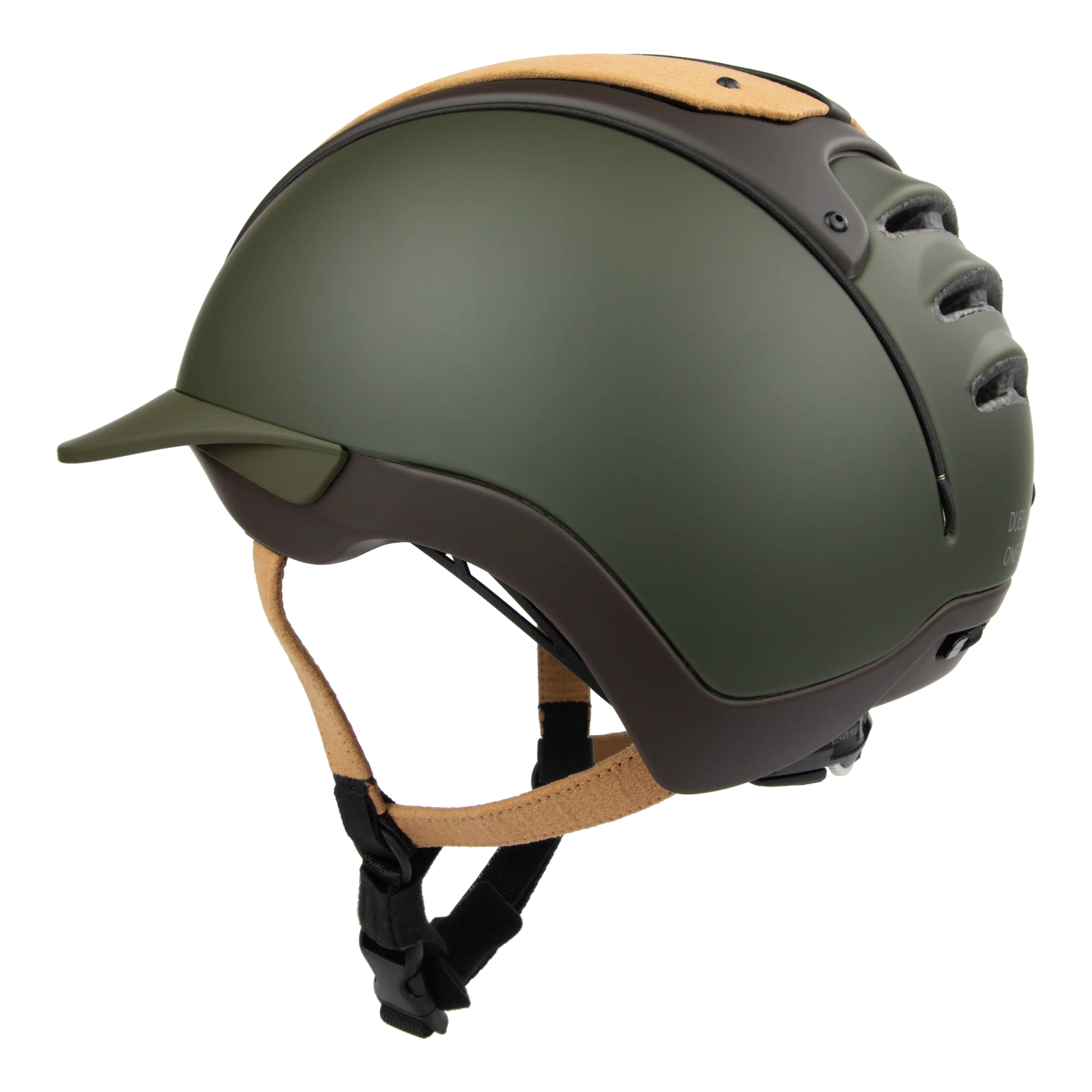The DUELL ONE Cottage Brown impresses with its elegant green tone, which creates a harmonious, natural look with warm brown accents - perfect for riders who want to combine style and down-to-earthness. With exquisite details and materials such as nubuck leather, special colors and patterns, the DUELL ONE celebrates its diversity. With superior ventilation, a wider visor and an emphatically raised design, it's not just the look that impresses, but also the functionality and comfort. Fit and appearance: Ergonomically perfect fit thanks to horizontal and vertical adjustment options (Disk-fit Vario). Benefit from increased comfort and style with our helmet's superior airflow design, providing fashionable coverage for a stylish ride. In addition, an even wider visor ensures optimal protection. Interior: Enjoy a unique wearing experience with the helmet's ultra-soft interior lining, which integrates seamlessly into the ventilation system and offers unparalleled comfort. Crafted with meticulous attention to detail, it offers a touch of luxury while its versatility ensures effortless care. With superior moisture regulation and optimal breathability, you can enjoy a fresh and comfortable wearing experience in every situation. Features: - Incl. helmet box - Optional: Winter equipment available - Optional: MyStyle piping with Swarovski crystals available in 7 different colors S = 51-54 cm M = 55-57 cm L = 58-60 cm Manufacturer: S.C. CASCO Group S.R.L Parc Industrial Sud No. 8-8/A RO-440247 Satu Mare info@casco-helme.de