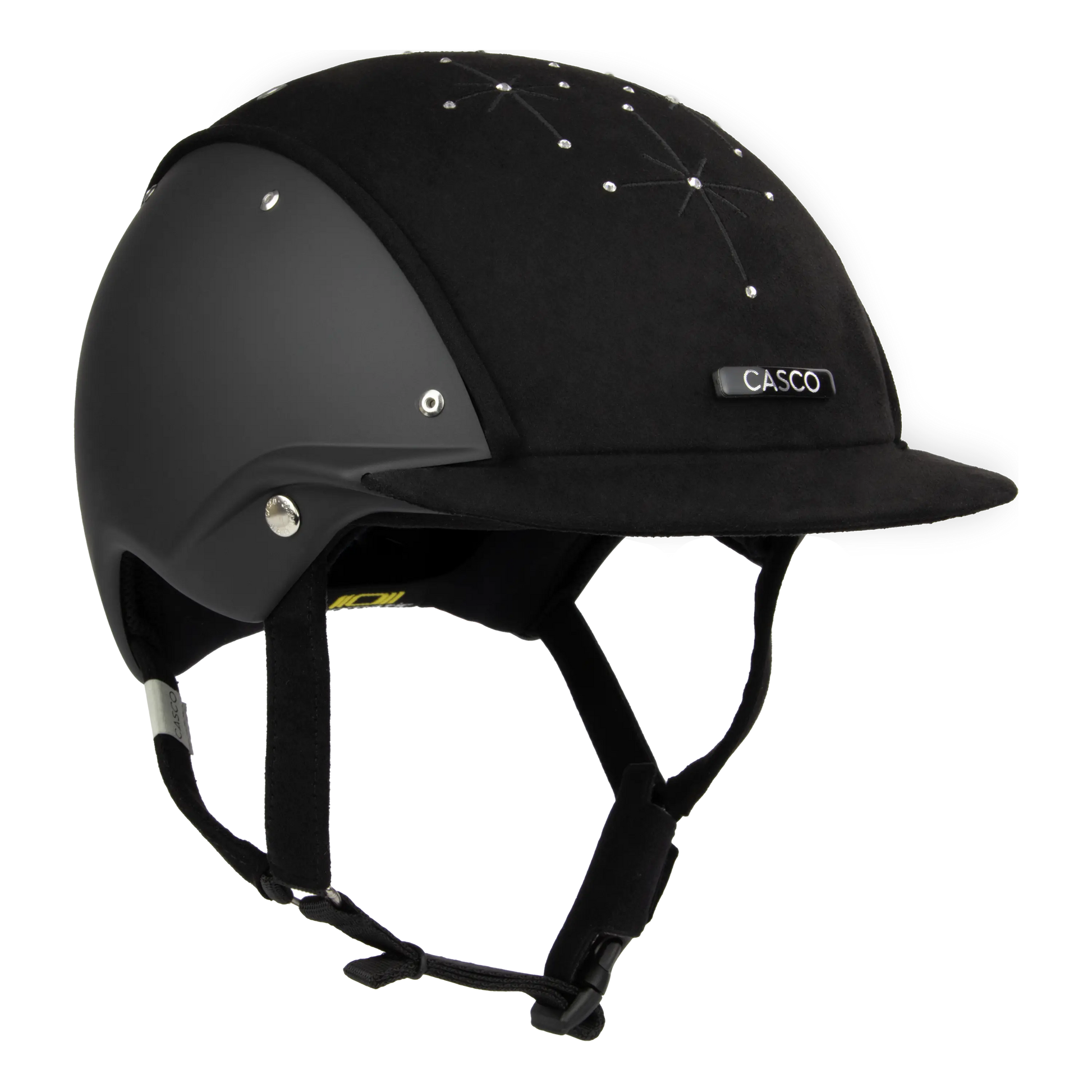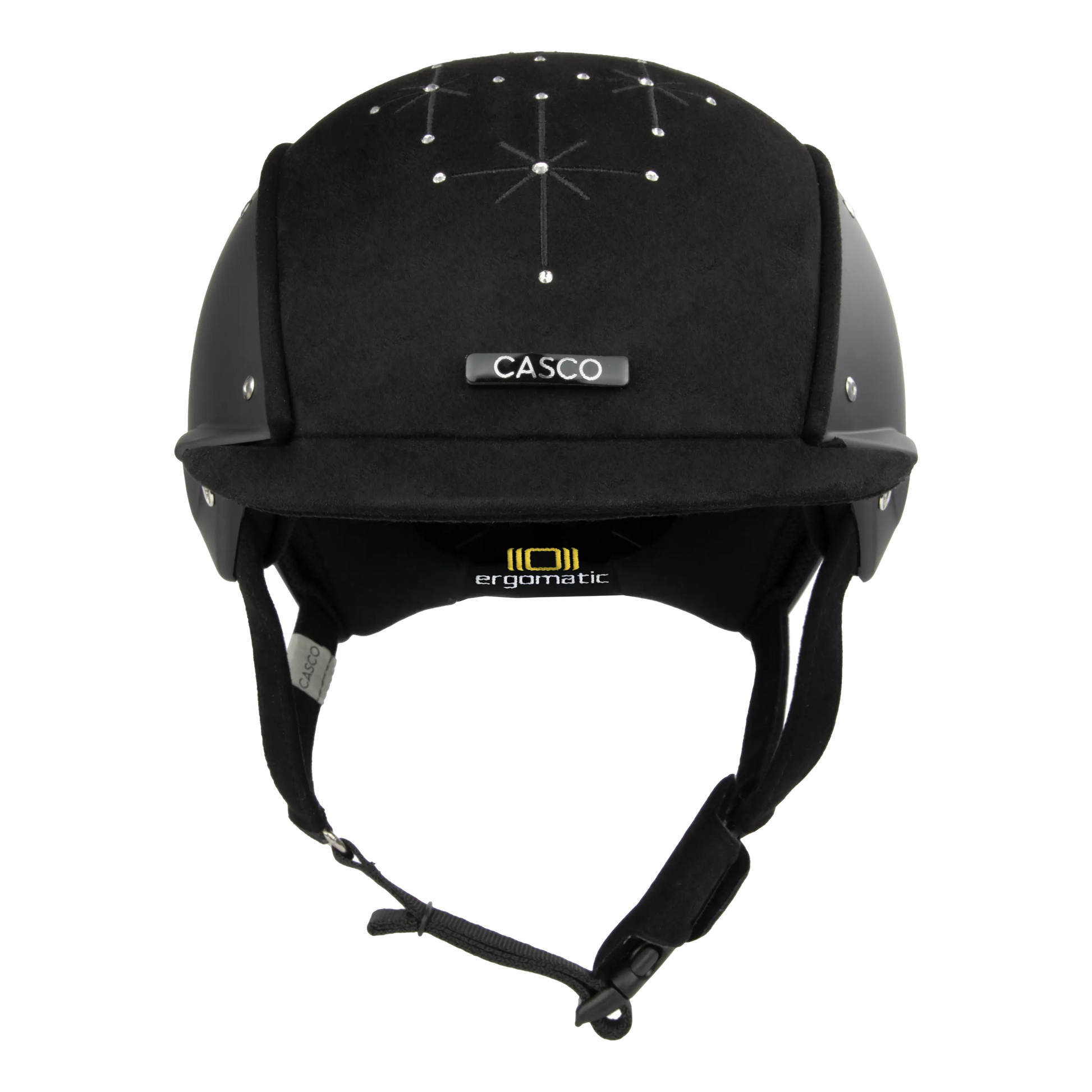 Der APART Brilliant Black setzt mit seiner mittig eingesetzten Kristallapplikation funkelnde Akzente – ein glamouröser Hingucker in tiefem Schwarz für anspruchsvolle Reiterinnen. Das Besondere am Design des APART ist die Kombination aus klassischer Form und modernen Materialien. Die runde, kompakte Helmform wirkt mit dem seitlich integrierten Helmschild sportlich und elegant. Die Materialkombination aus Lack und Velourstoff macht den APART nicht nur zu einem absoluten Eyecatcher, sondern sorgt auch für eine pflegeleichte und unempfindliche Helmoberfläche. Erstklassiger Komfort: Das Interieur passt sich direkt an die Formen des Kopfes an, damit ist kein weiteres Einstellen notwendig. Die hochwertig eingefasste Beriemung mit weich gepolsterten Bändern sorgt für den perfekten Halt. Der Coolmax-Stoffbezug bietet in Kombination mit dem Belüftungssystem jederzeit ein angenehmes Klima. Features: Inkl. Helmbox Auswählbare Größen: S = 52-56 cm M = 54-58 cm L = 58-62 cm Hersteller / Manufacturer: S.C. CASCO Group S.R.L Parc Industrial Sud Nr. 8-8/A RO-440247 Satu Mare info@casco-helme.de
