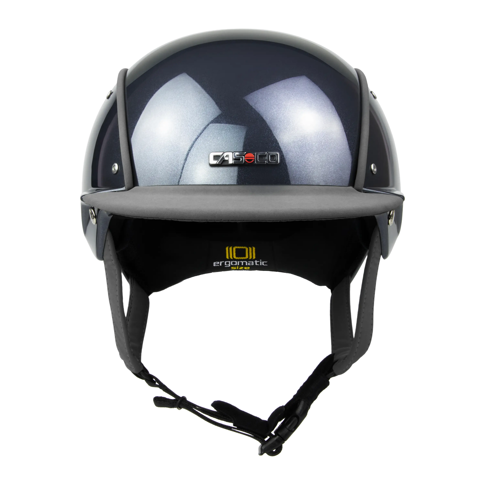 Das Besondere am Design des APART ist die Kombination aus klassischer Form und modernen Materialien. Die runde, kompakte Helmform wirkt mit dem seitlich integrierten Helmschild sportlich und elegant. Die Materialkombination aus Lack und Velourstoff macht den APART nicht nur zu einem absoluten Eyecatcher, sondern sorgt auch für eine pflegeleichte und unempfindliche Helmoberfläche. Erstklassiger Komfort: Das Interieur passt sich direkt an die Formen des Kopfes an, damit ist kein weiteres Einstellen notwendig. Die hochwertig eingefasste Beriemung mit weich gepolsterten Bändern sorgt für den perfekten Halt. Der Coolmax-Stoffbezug bietet in Kombination mit dem Belüftungssystem jederzeit ein angenehmes Klima. Drei Schalengrößen stehen zur Auswahl. Plus an Sicherheit durch weit nach unten gezogenem Heck Erhältlich in klassischem schwarz oder mit interessantem Speziallack in weiß oder grau Spezial Effekt Lack mit Chamäleon Effekt Inklusive Helmbox Auswählbare Größen: S = 52-56 cm M = 54-58 cm L = 58-62 cm Hersteller / Manufacturer: S.C. CASCO Group S.R.L Parc Industrial Sud Nr. 8-8/A RO-440247 Satu Mare info@casco-helme.de