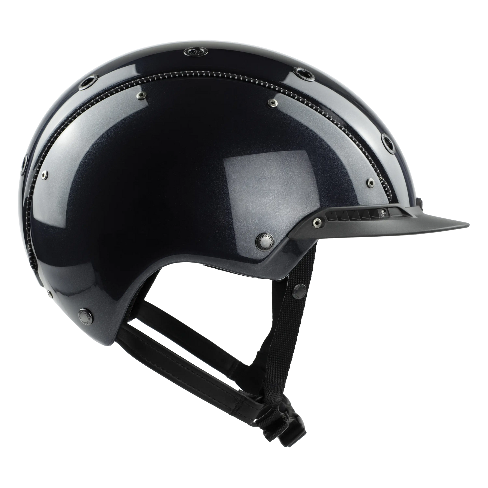 Mit einer zusätzlichen Hochglanz Handlackierung und extra Kratzschutz sorgt dieser Helm für glänzende Momente. Jetzt in einem dunklen blauton mit leicht metallischem Glanz! • Kleine Helmform - chic und sportlich • mit MyStyle-Wechselstreifen - weitere Farben oder Swarovski Kristallstreifen unter Zubehör erhältlich • Wasch- und wechselbare Polsterung • Disk-Fit Vario Größenverstellung • Plus an Sicherheit durch weit nach unten gezogenes Heck • Inklusive Helmbox • Winter-Set, kuschelige Ohren zum Einklipsen am Helm, optional erhältlich unter Zubehör Auswählbare Größen: Gr. L 58-62 cm Gr. M 56-58 cm Gr. S 52-56 cm Hersteller / Manufacturer: S.C. CASCO Group S.R.L Parc Industrial Sud Nr. 8-8/A RO-440247 Satu Mare info@casco-helme.de