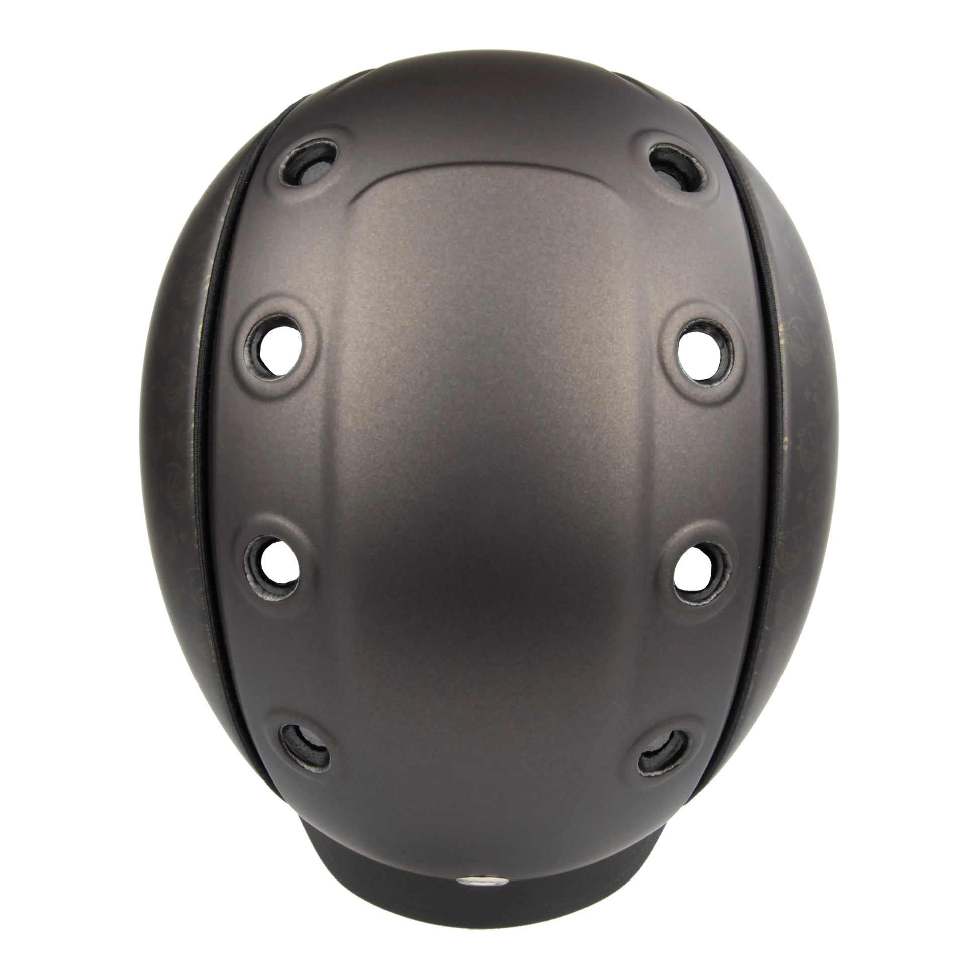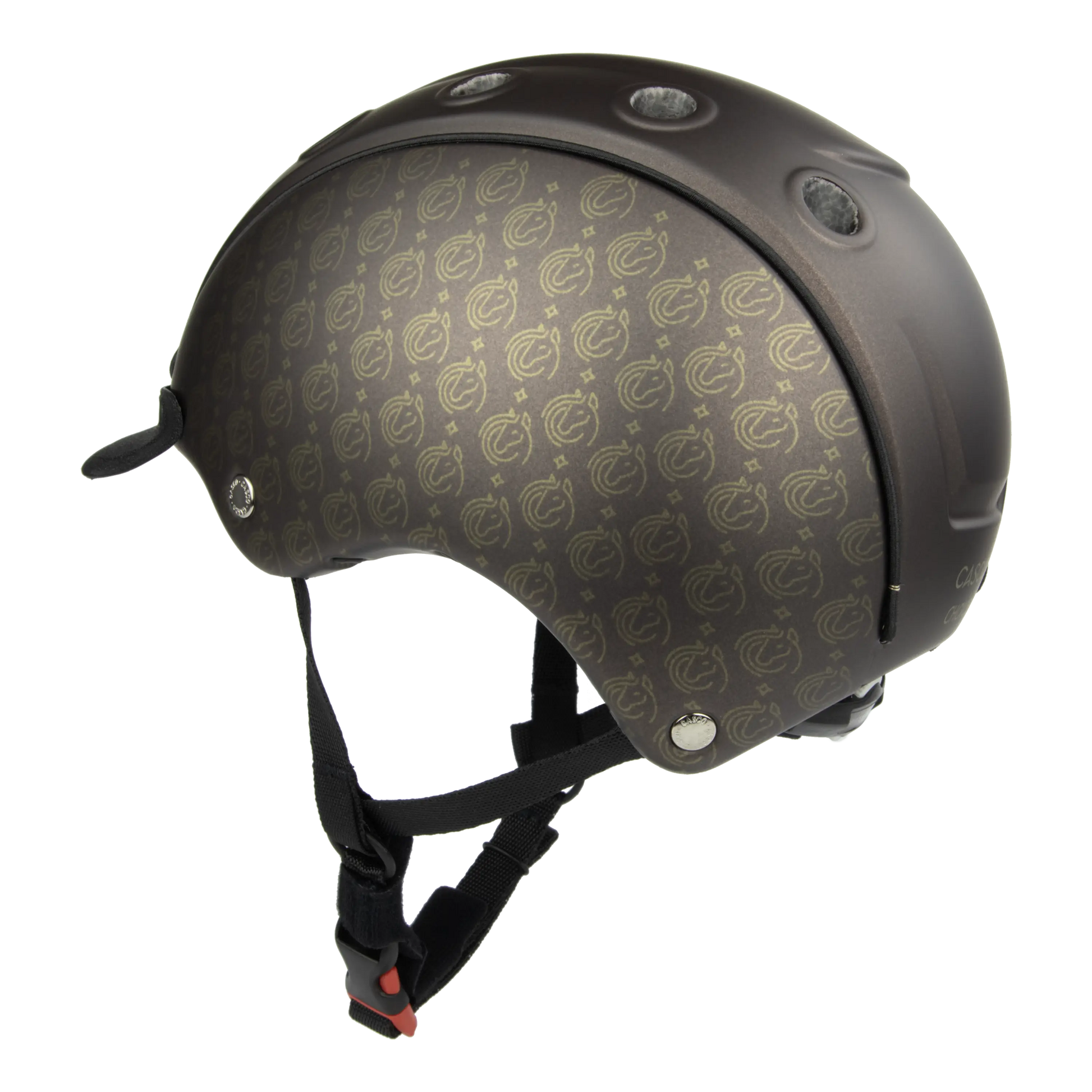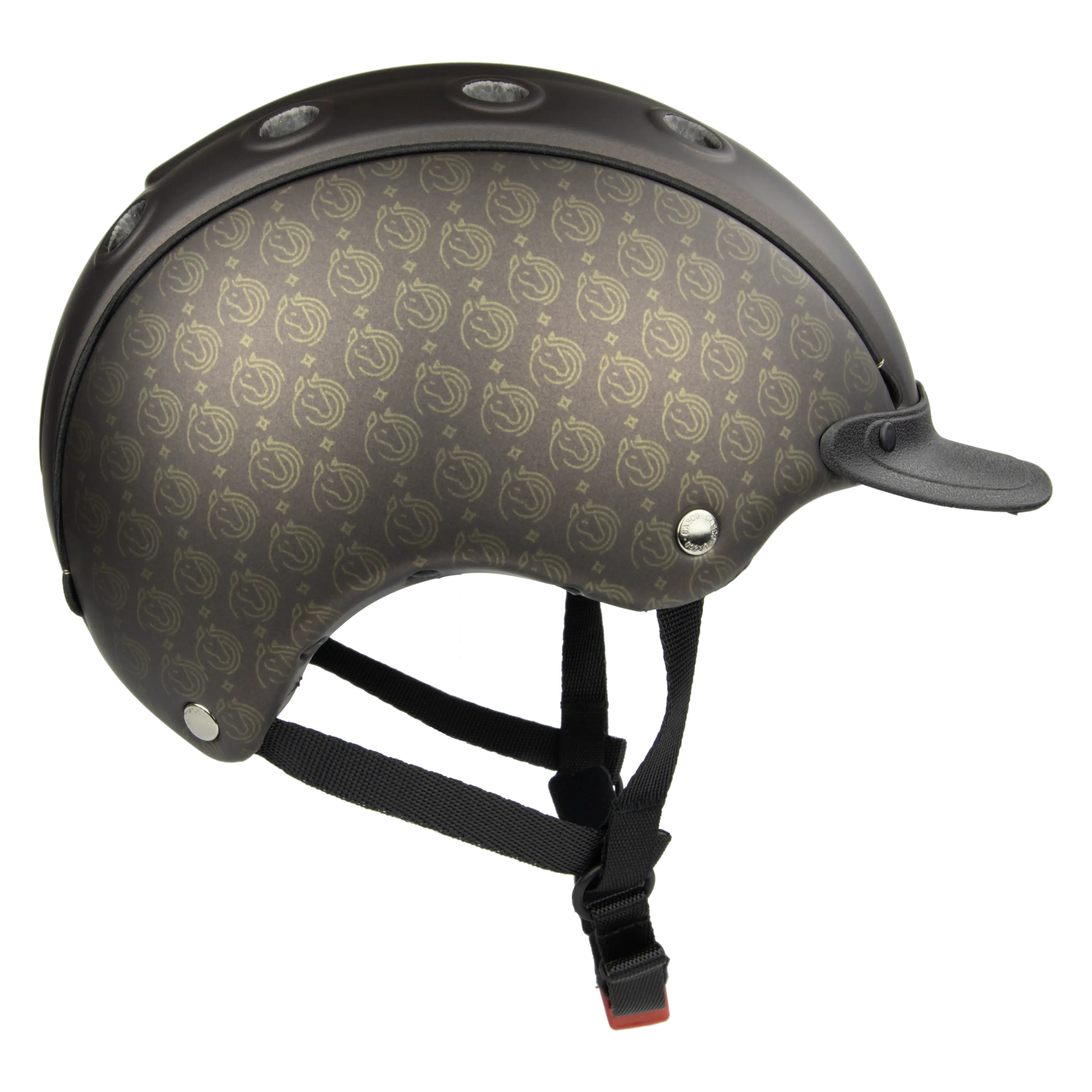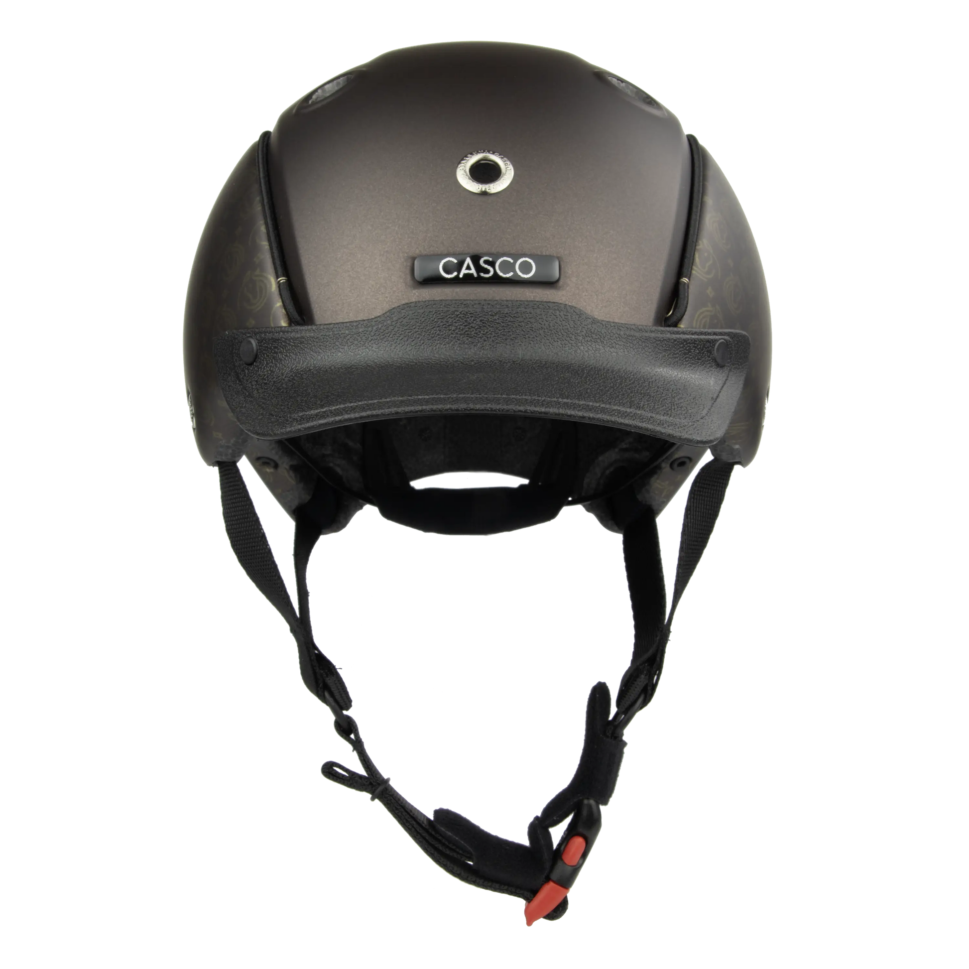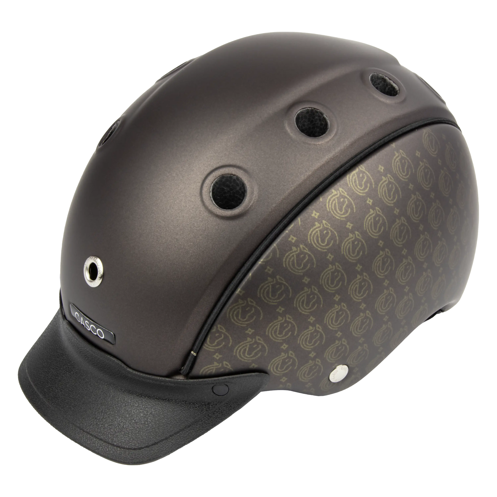 Die Kombination aus dem warmen braun und den goldenen Akzenten sorgt für eine harmonische Mischung aus Klassik und Luxus. Moderner schlichter Reithelm für Kinder, Jugendliche und zierliche Frauenköpfe mit dem Plus an Sicherheit durch die weit nach unten gezogene Heck- & Schläfenpartie. Zugelassen als Schutzhelm zum Reiten, Fahrrad - und Skifahren! • Verbesserte Belüftung für verbesserten Luftstrom • DISK FIT VARIO Komfort mit einfacher Einstellung • Erweitertes Heck mit Mikroschalen-Vollabdeckung Helmgewicht: 360 g (Größe S) Auswählbare Größen: Gr. S 52-56 cm Hersteller / Manufacturer: S.C. CASCO Group S.R.L Parc Industrial Sud Nr. 8-8/A RO-440247 Satu Mare info@casco-helme.de