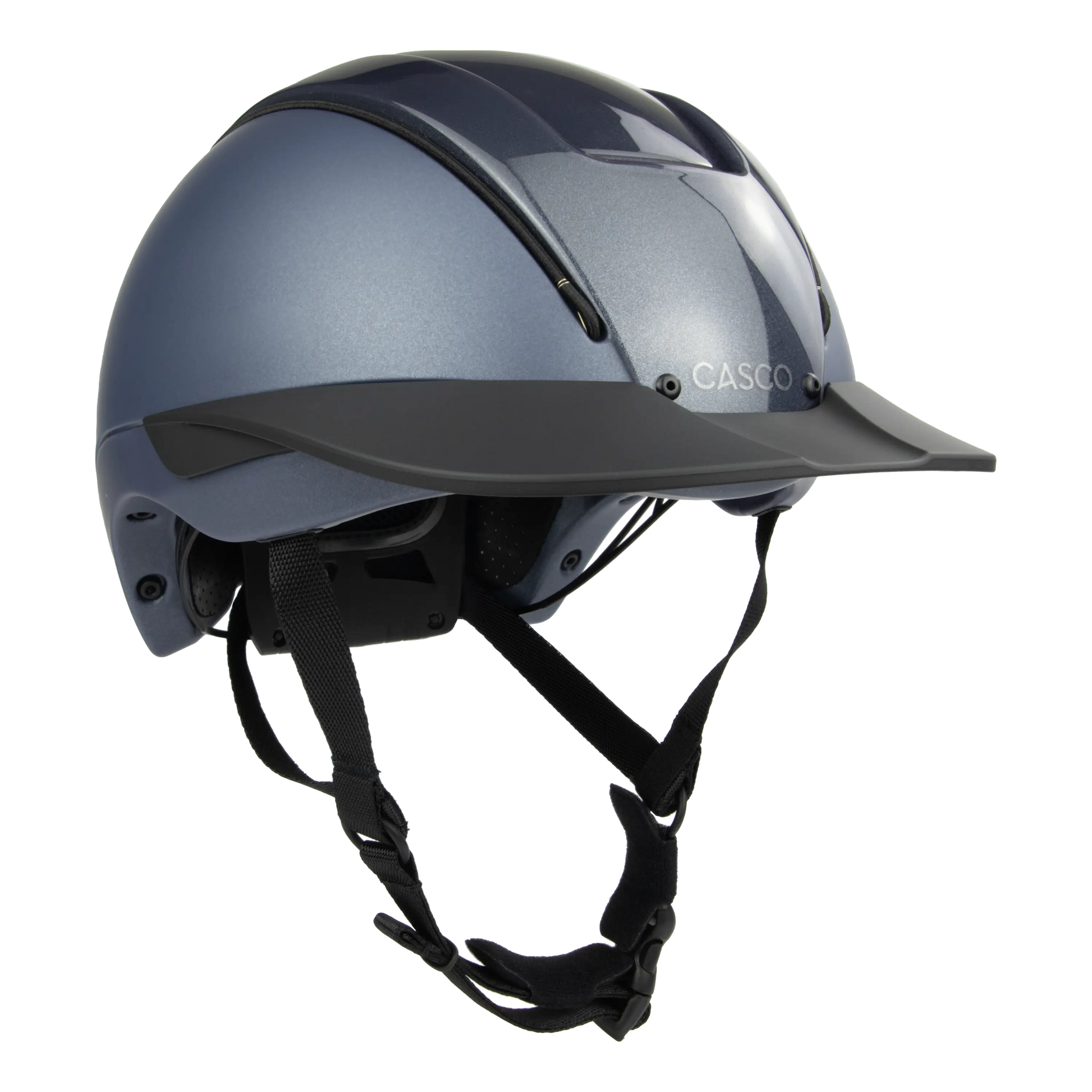 Marineblau mit matten und glänzenden Metallic-Komponenten: Einzigartige Raffinesse. Der DUELL steht bereit, dich auf jedem Reitabenteuer zu begleiten! Mit Vielseitigkeit, sportlicher Eleganz, bequemer Passform, exzellenter Belüftung und einem breiteren Visier wird er zu einem stilvollen Begleiter und macht jede Tour zu einem einzigartigen und angenehmen Erlebnis. Hervorragendes Luftstromdesign für verbesserten Komfort. Ausgestattet mit einem Insektenschutz aus leichtem, aber robustem Aluminium, bedeckt es die Lufteinlassöffnungen an der Vorderseite des Helms und bietet zusätzlichen Schutz während Ihrer Ritte. Innenausstattung: Gönnen Sie sich höchsten Komfort mit dem Mikrofaserfutter, das von der bewährten Innenausstattung unseres Mistrall-2 Helms übernommen wurde. Sorgfältig gefertigt, um sich nahtlos in das Belüftungssystem zu integrieren, einschließlich eines gepolsterten Teils an der Stirn für zusätzlichen Komfort und Schutz, sorgt es für einen sicheren und bequemen Sitz und garantiert gleichzeitig unübertroffenen Komfort unter allen Bedingungen. Es ist makellos gestaltet, leicht abnehmbar, waschbar und präzise ausgearbeitet. Features: - Optional: Helmbox - Optional: Winterausstattung erhältlich - Optional: MyStyle Biesen mit Swarovski Kristallen in 7 verschieden Farben erhältlich S = 51-54 cm M = 55-57 cm L = 58-60 cm Hersteller / Manufacturer: S.C. CASCO Group S.R.L Parc Industrial Sud Nr. 8-8/A RO-440247 Satu Mare info@casco-helme.de