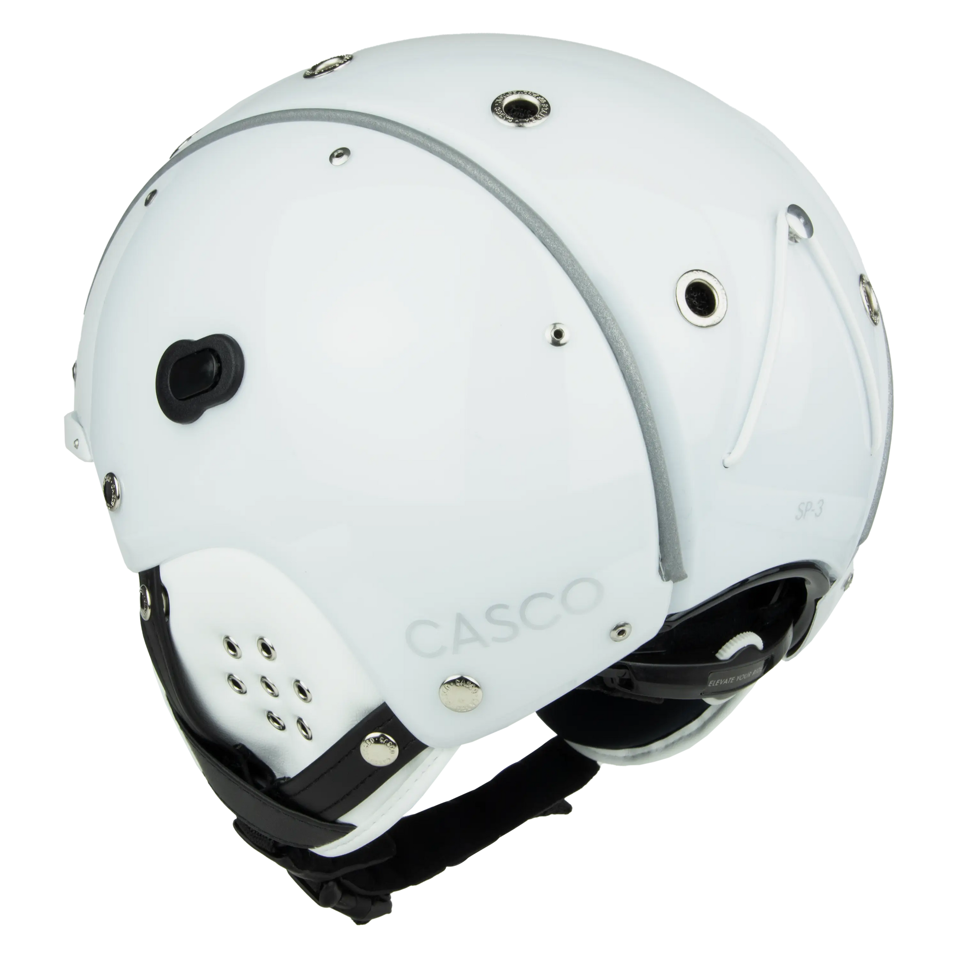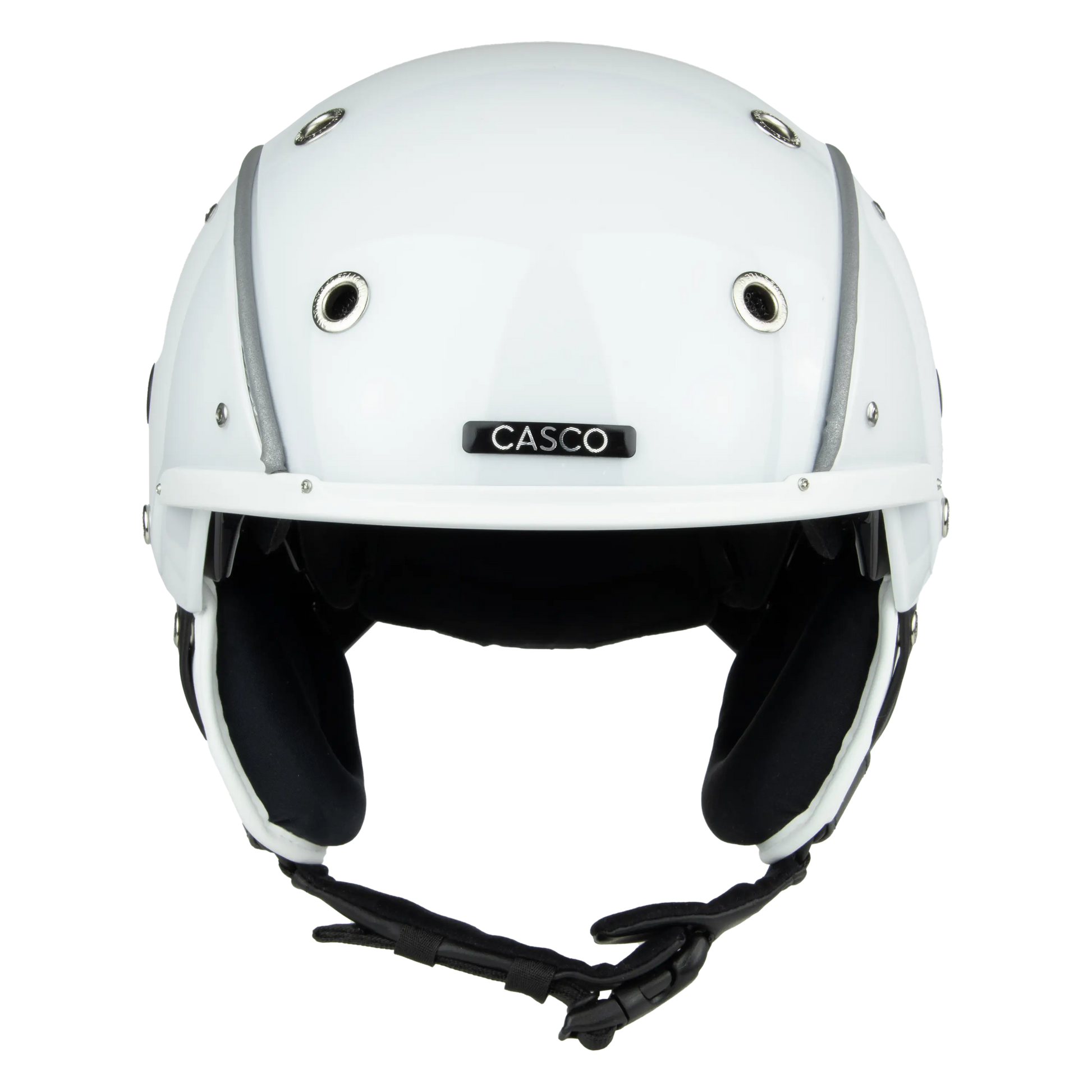 Casco SP-3 Skihelm – Ikone der Eleganz & Sicherheit Der Casco SP-3 Skihelm ist der Inbegriff zeitloser Eleganz auf der Piste. Mit seinem ikonischen Design, edlen Details und modernster Technologie verbindet er die Casco-Designtradition mit innovativer Perfektion. Ob mit Sonnenbrille oder Skibrille – dieser Premium-Skihelm ist ein stilvolles Statement für Skifahrer, die ästhetischen Anspruch und höchste Sicherheit vereinen möchten. Aufbau – Schutz & Design in Perfektion 3-teilige Schalenkonstruktion: Patentierte, ergonomische Form für eine schlanke, kopfnahe Passform mit optimaler Stoßabsorption. Raffinierte Details: Naturinspirierte Materialien wie edle Leinenfasern verleihen dezente Eleganz und Luxus. Visier & Brillenintegration MagnetLink-System: Perfekt auf die FX-80 Skibrille abgestimmt – für einfache Befestigung, präzise Ausrichtung und höchsten Komfort. Nahtlose Integration: Ideale Sicht und optimale Belüftung auch bei wechselnden Bedingungen. Tragekomfort auf höchstem Niveau Signature Ohrpads: Handgefertigt, perforiert und akustisch optimiert – klare Wahrnehmung & eleganter Komfort. Disc-Fit Vario System: Individuell anpassbar in Höhe und Breite für perfekte ergonomische Passform. Mikrofaser-Innenfutter: Luxuriös weich, herausnehmbar & waschbar – pflegeleicht und komfortabel. Gepolsterter Kinnriemen: Druckfrei und angenehm – auch an langen Skitagen. Helmklima Harmonic Airflow: Perfekt abgestimmte Luftzirkulation für ein frisches, angenehmes Tragegefühl – von der ersten bis zur letzten Abfahrt. 52-56 cm = S, 56-58 cm = M, 58-62 cm = L Hersteller / Manufacturer: S.C. CASCO Group S.R.L Parc Industrial Sud Nr. 8-8/A RO-440247 Satu Mare info@casco-helmets.com